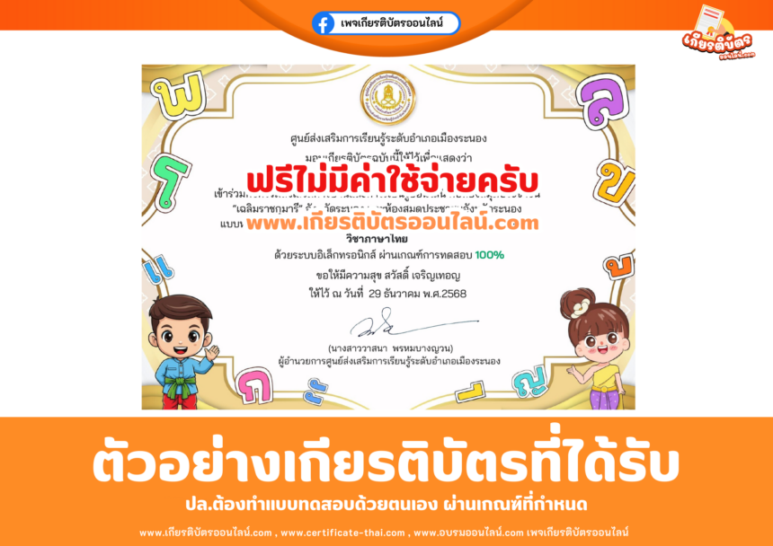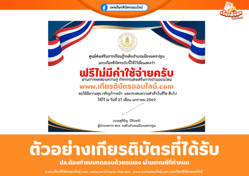 เกียรติบัตรออนไลน์ฟรี ทำแบบทดส…