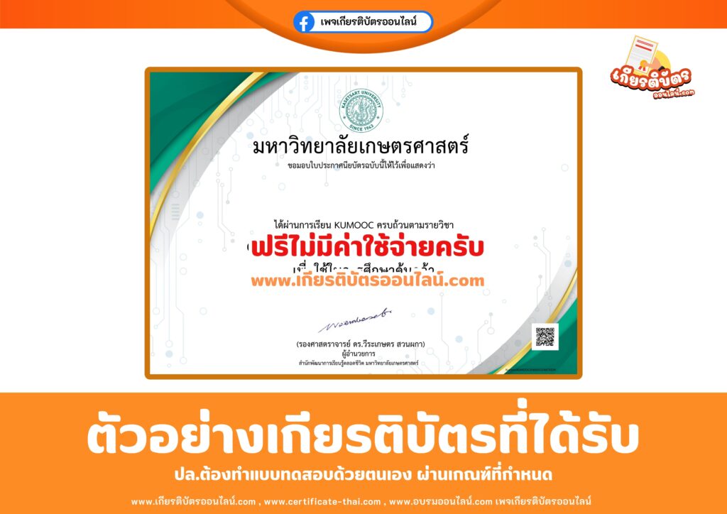 อบรมฟรี ไม่มีค่าใช้จ่าย พร้อมรับ วุฒิบัตรจากมหาวิทยาลัยเกษตรศาสตร์