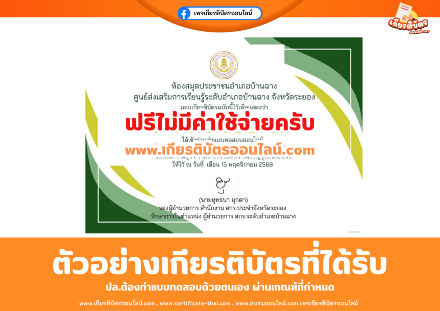 เกียรติบัตรออนไลน์ฟรี ทำแบบทดสอบศูนย์ส่งเสริมการเรียนรู…