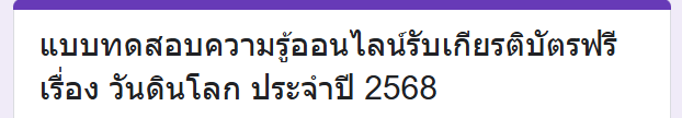 เกียรติบัตรออนไลน์ฟรี ทำแบบทดสอบศูนย์ส่งเสริมการเรียนรู้ระดับอำเภอสำโรงทาบ เรื่องวันดินโลก 2568