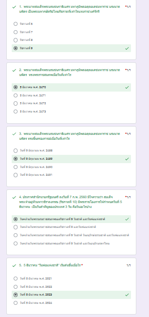 แบบทดสอบ วันคล้ายวันพระบรมราชสมภพ ในหลวง รัชกาลที่ 9 – วันชาติไทย – วันพ่อแห่งชาติทั้งหมด จำนวน 15 ข้อ หากทำแบบทดสอบผ่าน 60% จะได้รับเกียรติบัติผ่านอีเมล