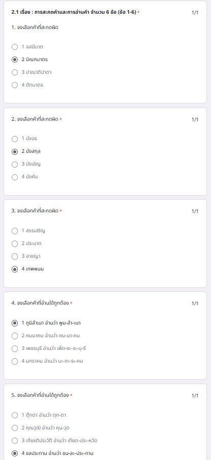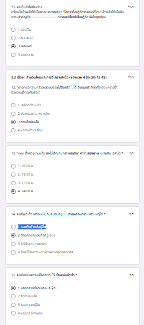 1. ผู้ร่วมกิจกรรมส่งเสริมการอ่านและการเรียนรู้ผ่านระบบ Google forms ทำแบบทดสอบความรู้ เรื่อง วิชาภาษาไทย