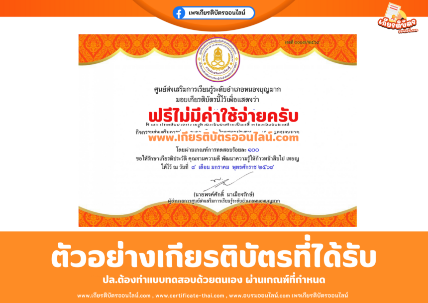 เกียรติบัตรออนไลน์ฟรี ทำแบบทดสอบโรงเรียนหนองม่วง ตอบปัญ…
