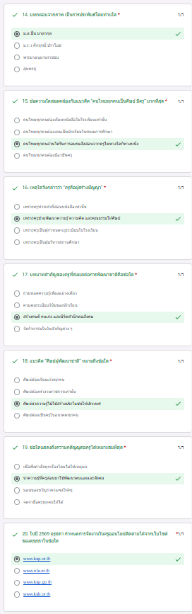 *** ทำคะแนนได้ 75% ขึ้นไป (15 ข้อ) ท่านจะได้รับเกียรติบัตรทางอีเมลที่แจ้งไว้ ***