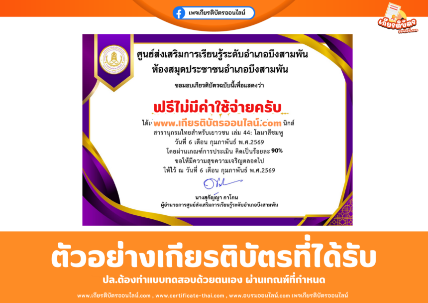 เกียรติบัตรออนไลน์ฟรี ทำแบบทดสอบห้องสมุดประชาชนอำเภอพระ…