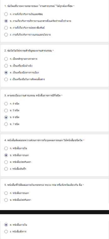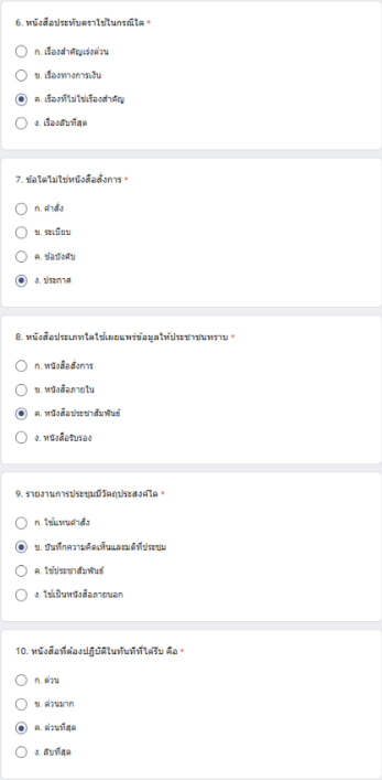 แบบทดสอบนี้เป็นส่วนหนึ่งของหลักสูตรออนไลน์เรื่อง “งานสารบรรณ และเทคนิคการเขียนหนังสือราชการ” ซึ่งจัดทำขึ้นเพื่อวัดความรู้ความเข้าใจเกี่ยวกับการปฏิบัติงานสารบรรณให้เป็นไปอย่างถูกต้องตามระเบียบสำนักนายกรัฐมนตรีว่าด้วยงานสารบรรณ