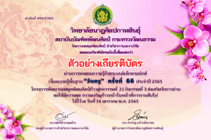 เกียรติบัตรออนไลน์ฟรี ย้อนหลังวันครู ครั้งที่ 66 ประจำปี 2565 ผู้ที่ผ่าน 75% จะได้รับเกียรติบัตร