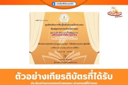 เกียรติบัตรออนไลน์ฟรี แบบทดสอบออนไลน์วันที่ระลึกสากลแห่งการรู้หนังสือ 2568 ห้องสมุดประชาชนจังหวัดอ่างทอง