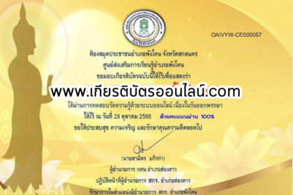 เกียรติบัตรออนไลน์ฟรี ครู นักเรียน ทำข้อสอบ ทำแบบทดสอบ แบบทดสอบออนไลน์ กิจกรรมวันออกพรรษา อำเภอไทรโยค สกร 66