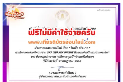 เกียรติบัตรฟรี แบบทดสอบออนไลน์ เรื่อง โรคมือ เท้า ปาก ของห้องสมุดประชาชน เฉลิมราชกุมารี อำเภอสันกำแพง จังหวัดเชียงใหม่ 2568