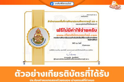 เกียรติบัตรออนไลน์ฟรี ทำแบบทดสอบสำนักงานเขตพื้นที่การศึกษาประถมศึกษาราชบุรี เขต 1 เรื่อง ความรู้ความเข้าใจหลักสูตรแนวปฏิบัติที่เป็นเลิศ(Best Practice) 2569