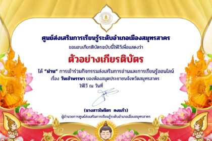 เกียรติบัตรออนไลน์ฟรี แบบทดสอบออนไลน์ รับเกียรติบัตร ห้องสมุดประชาชนจังหวัดสมุทรสาคร เรื่อง วันเข้าพรรษา 2568